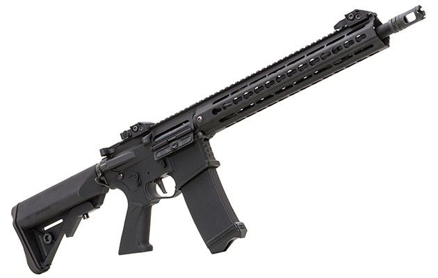 ハンドガードに包まれたアウターバレルもCNC加工による高精度なもので、独自に設計された3-Point Fixed Ringによってアッパーレシーバーにガッチリ固定され、剛性の高さを感じさせてくれる。アウターバレルの長さは14.5インチと、一般的なカービンサイズだが、全体のスマートな印象から、実際のサイズより長く見える。
