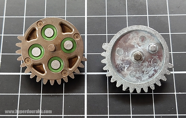 左がハイプロテクションギアで、右はマルイのノーマルセクターギアだよ。