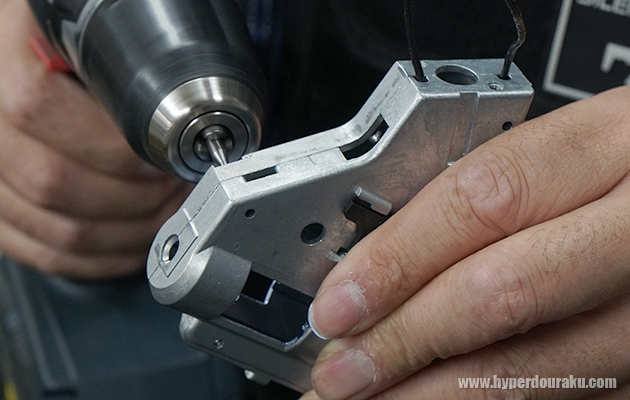 このサイレントキラーカスタムは初速が落ちてしまうので、メインスプリングも強めのものに交換しているんだ。あと、メタル軸受けに交換するのもメニューに入っているよ。