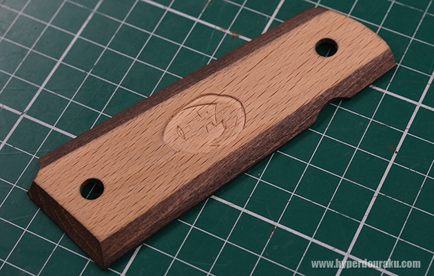 あーこれ、ウチの工房チーフの顔を彫り込んで欲しいというお客さんからのカスタムグリップ製作依頼でさ。