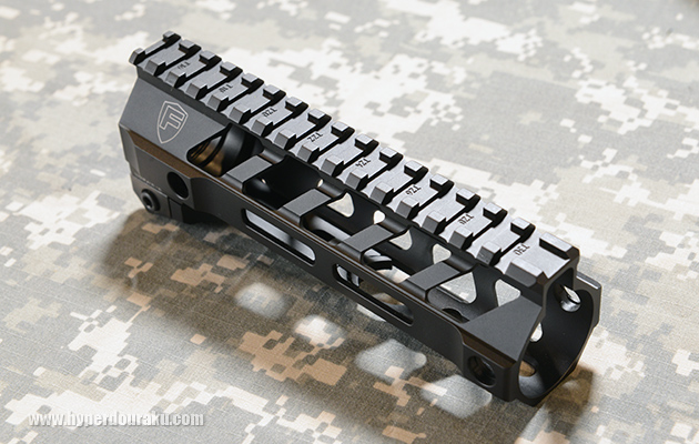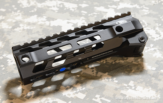 ベースはFORTISのSWITCH RAILで、Battle ArmsのカスタムAR用にコラボしたB.A.Dロゴの入ったB.A.D EDITION。本体素材は航空機グレードの6061-T6アルミニウム。左側面にはBattle Armsのロゴレーザー刻印が入る。