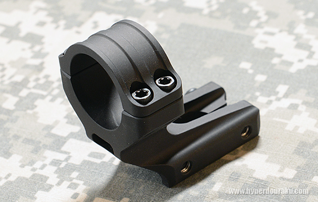 素材は6061-T6アルミニウム製。実測重量は88g。リング部は30mmチューブに対応しており、リングのネジの締め付けトルクは30 IN-LB、マウント部ネジは60 IN-LBとレーザー刻印されている。
