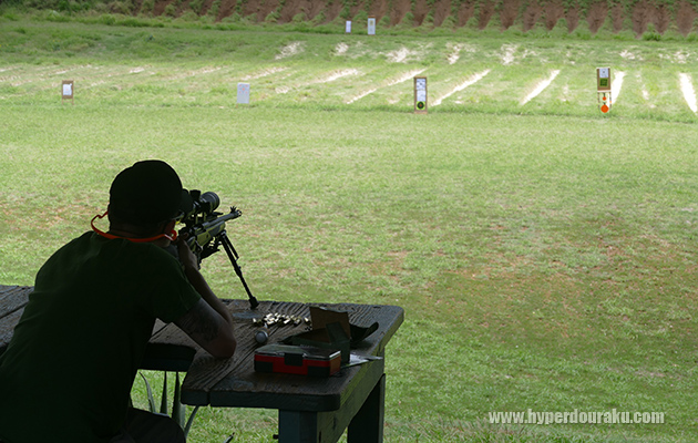 事前に射撃姿勢とトリガー・プルの練習をして撃って頂くが、前傾射撃姿勢をとり、フォロースルーを決めて撃てば、本来のAR15の性能を発揮できるだろう。