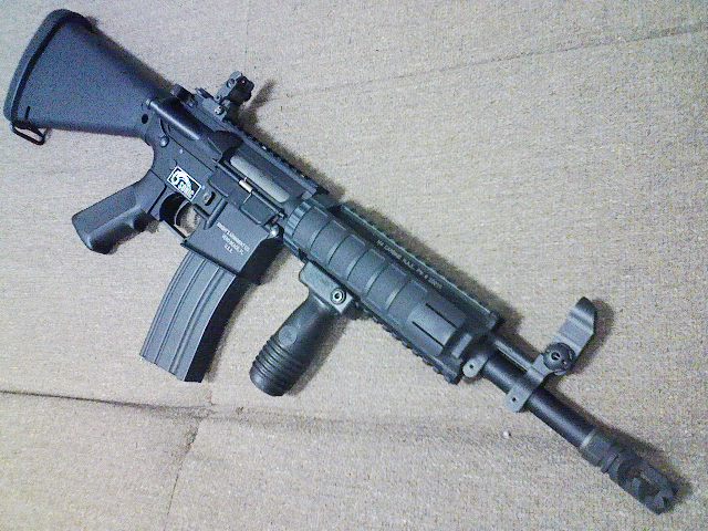 サバゲでは動きまわるのが好きなので、自分なりにその妨げにならない程度の全長に前後共切り詰めたカスタムになります。