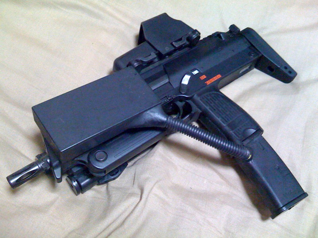 ■エントリー No.B009 ■投稿タイトル:MP7A1 自作多弾装カスタム ■投稿者:JUNKIE さん ■コメント MP7の多弾装マガジンに不満を持ち、自作で多弾装ボックスを作りました。 700発程度を保持できますが、思ったほど弾上がりがよくなく、Ver.2を構想中ですw