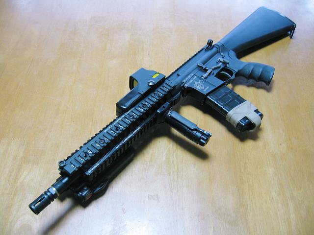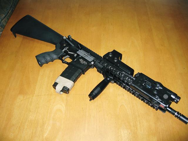 ■エントリー No.C002 ■投稿タイトル:SR-15 URX E3 近接戦仕様 ■投稿者:いたずら坊主 さん ■コメント 20インチバレル用の長いURXと14.5インチバレルを気まぐれで組み合わせた物。