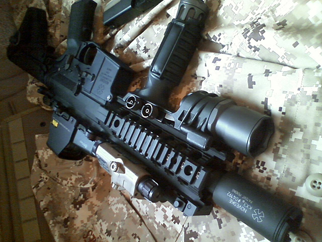 ■エントリー No.C008 ■投稿タイトル:CQB‐Rスペサル ■投稿者:ねこ助 さん ■コメント 当初は、某日本人中尉仕様の短いM4を目指していましたが、最終的にこうなりました。 フロントのMRFと、UBRストックがポイントです。