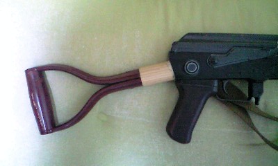 ■エントリー No.B005 ■投稿タイトル:土方風AK47 ■投稿者:中尉改め特攻スナイパー さん ■コメント どこかのサイトで実際に一度見たことのあるカスタムでした。あまりの馬鹿さ加減に当初は「くだらない」と思いつつも、やってみました。 一番苦労した点は、ホームセンターで「イイ感じ」のスコップを探すことでした。 これが案外方にしっくりなじむので驚きです!!! リーズナブルなカスタム内容となっておりますので、是非皆さんもチャレンジして下さい。