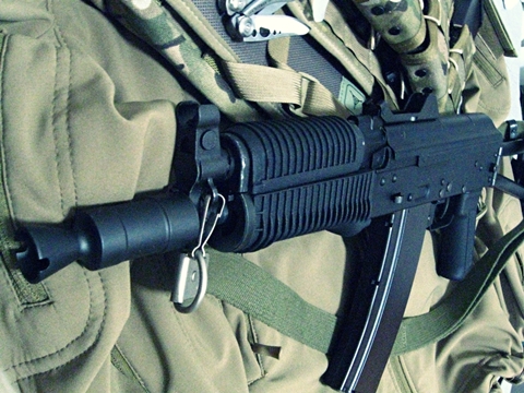 次世代AKは反動は楽しいですが、フェイク木ハンドガードが安っぽい&いまいちな形状なので、AKS74Uのハンドガードで一番好きなリブハンドガードを装着しました。