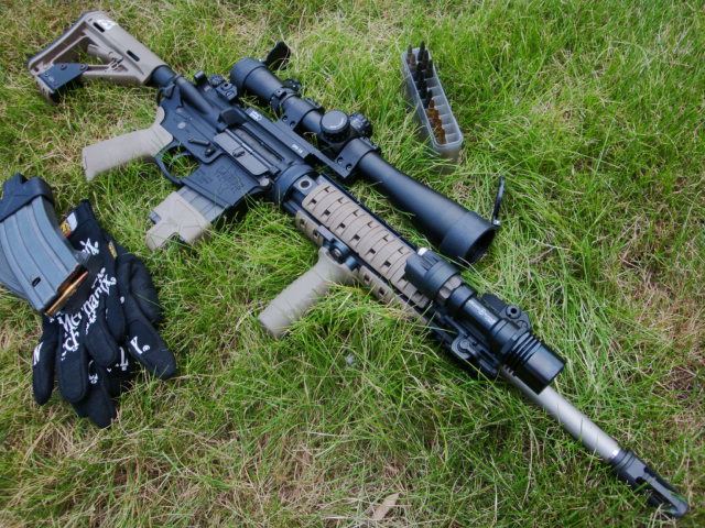 16インチヘビーバレルに11.5インチハンドガードという組み合わせで、Leupold M3タイプのスコープを載せています。