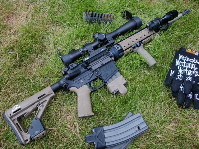 本来であればMAGPULパーツの色合いはFDEではなく、LaRue特製のUDEカラーにすべきですが、入手困難なため笑って流していただけると助かります。