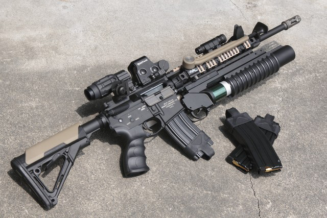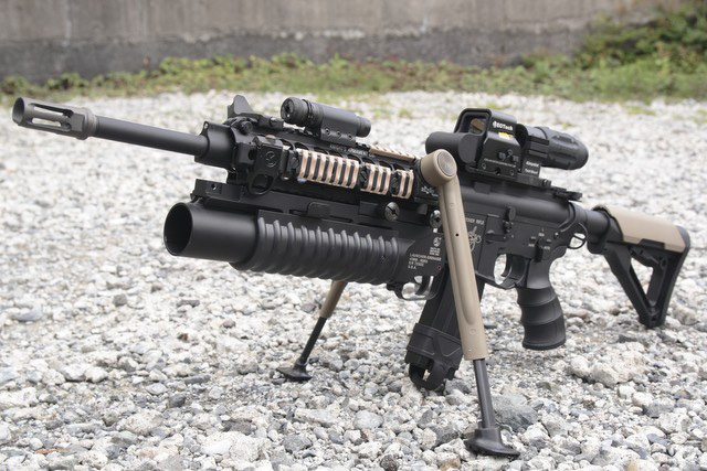 グレネードランチャーは換装が楽なようにあえてRISに直付け。