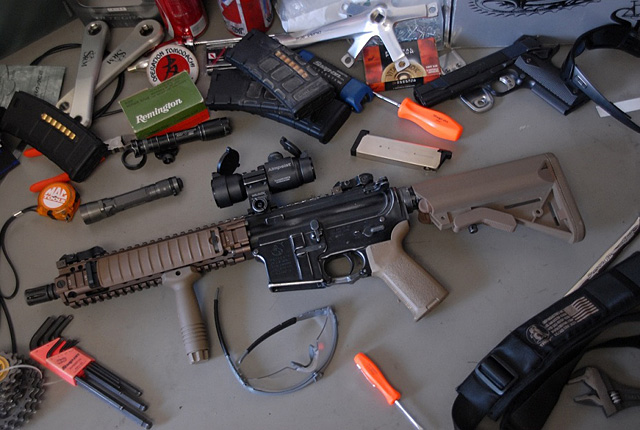 フロントはマッドブル社製のDaniel Defense Mk18 RIS2を使い、アウターバレルはPDI製に交換してフロントを強化しました。