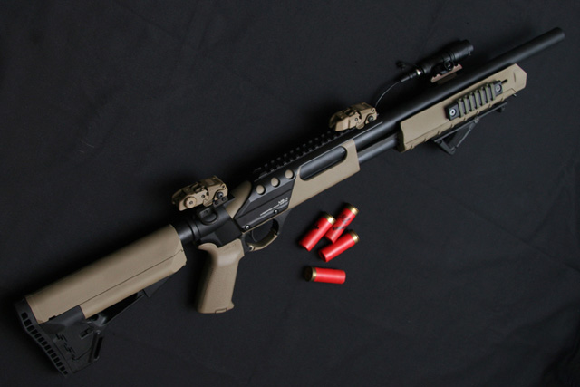 マガジンをショートのものに変えているので、ショットガンの細身なイメージを保てていると思います。