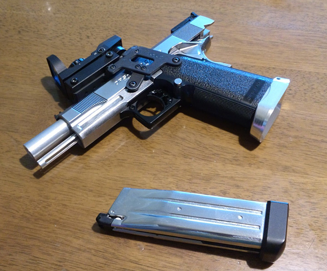 マルイのハイキャパ5.1マッチカスタムをベースに完全なレースガンに仕立ててみました。変更パーツは以下の通りです。