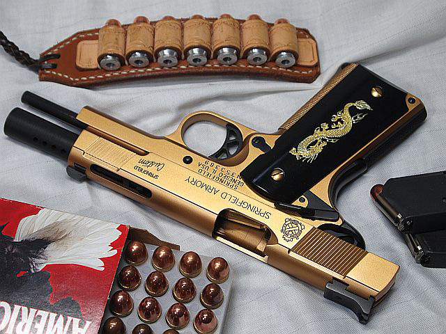 金・黒、ドラゴン入りと結構どぎつい感じですが、下品と派手の境界線上でうまくバランスが取れている銃だと個人的には考えています。
