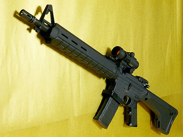 M16A3をベースに、バレルを16インチにカットし、ハンドガードとストックをMAGPULのMOEに交換。