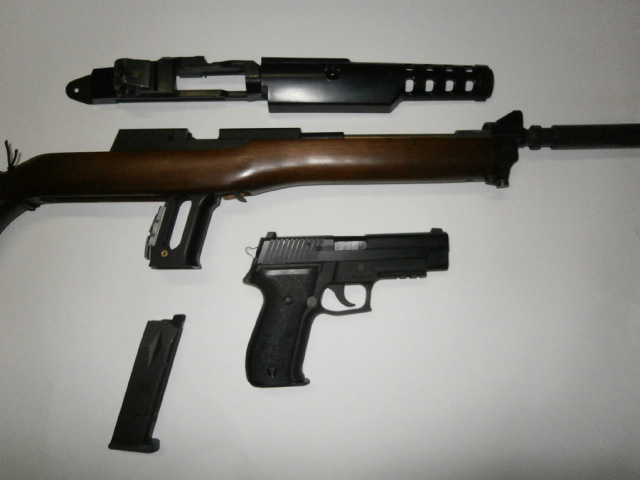 そこで手元に在った、マルゼンのミニ14と、マルイのシグ226を利用して、ハンドガンの、コンバージョンとしました、マガジンは共通ですので便利です。