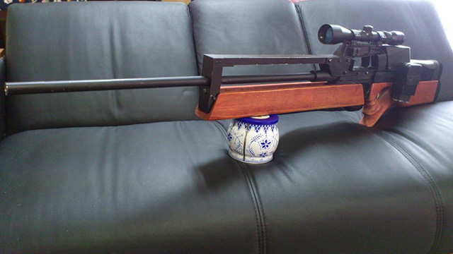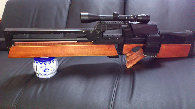 東京マルイP-90TRをベースに、アルミ、木材を利用してWA2000風にしてみました。