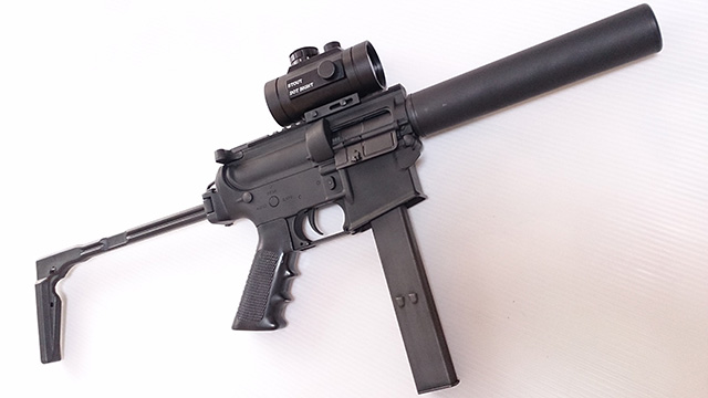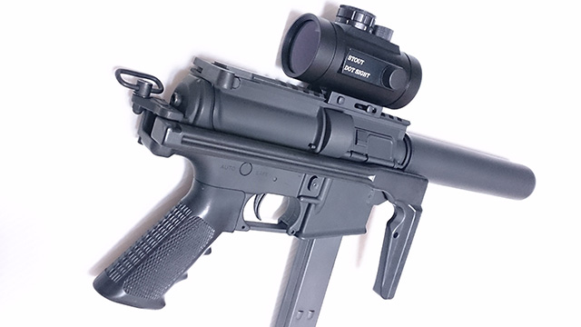 バッファーチューブを排除し、クラウン製10歳以上用AEG「ELEX-9(MP9)」からフォールディングストックを移植。