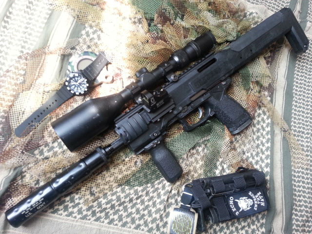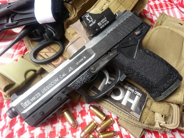 ■投稿タイトル: SOCOM.Mk23 S-ASSY ■投稿者:波乗りリョー ■コメント 名機マルイ・ソーコムピストルをよりサバゲ使用に特化させるべくカスタム。 トリガーパーツを研磨しトリガープルを、グリップを削りステッピング処理を施す事で操作性を向上させました。 また、セカンダリとして単体使用の他、プライマリウェポンとして用途に合わせたコンバートが可能です。