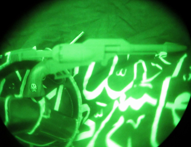 ステルス塗料は肉眼では黒NVGを通しては白くうつり他の有機物に溶け込む。