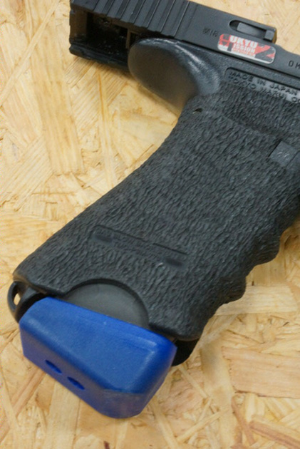 後付けタイプのマグウェルは付けずに、メーカーを失念しましたがランヤードプラグを取付け、グリップ下部を半円状にカットした事でマグウェルと同等の性能に。