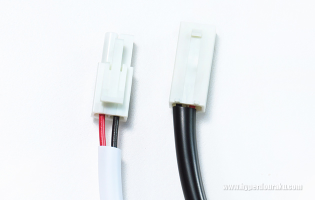 白いケーブルをバッテリーに、黒いケーブルを電動ガン本体に接続します。オスメス違うので、こちらも接続を間違えることないようになっています。