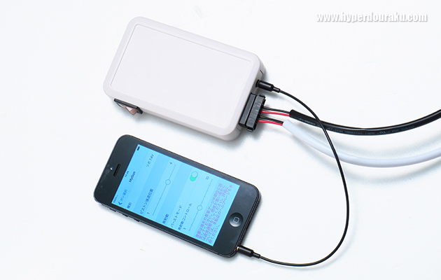 もう1本ある接続ケーブルをスマートフォンのイヤフォンジャックと中継ボックスのホールに接続します。