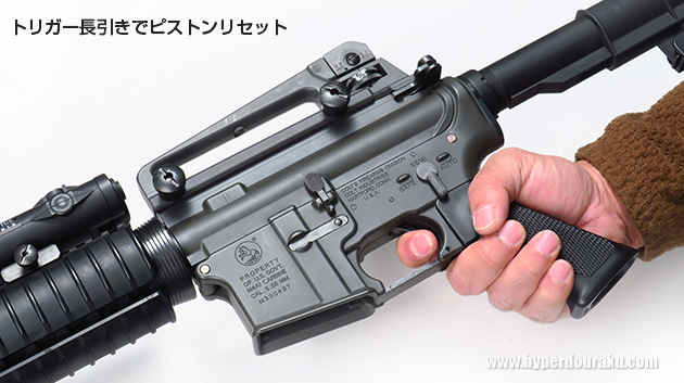 方法は中継ボックスを介す必要もなく、実に簡単にできます。最後に1発空撃ちしたまま数秒トリガーを引きっぱなしにするだけです。しばらくすると“ガチャン”とピストンが前進します。