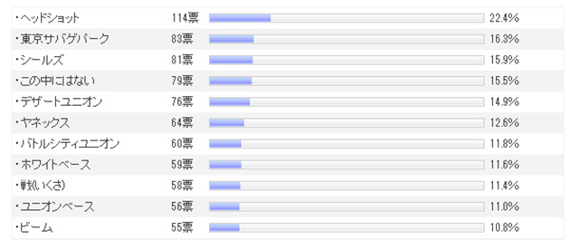 関東のサバイバルゲームフィールド一覧をもとに、あなたの良く行くフィールド、好きなフィールドを教えてください。という内容の結果は...。