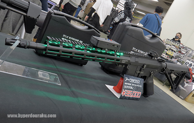G&Gの2002年発売予定の5丁が展示されていました。長物4丁は全て樹脂フレームでサバゲー向けの軽量化モデルとなっています。こちらはG&GオリジナルのMXC9 ENHANCED VERSION。以前レビューしたG&G PCC45のバリエーションモデルです。