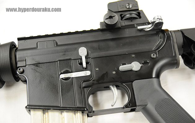 ポートカバー、トリガー、チャージングハンドル、セレクター、ボルトストップ、マガジンキャッチなどがシルバーだが、これは試作品だからで、製品版では黒になるとのこと。