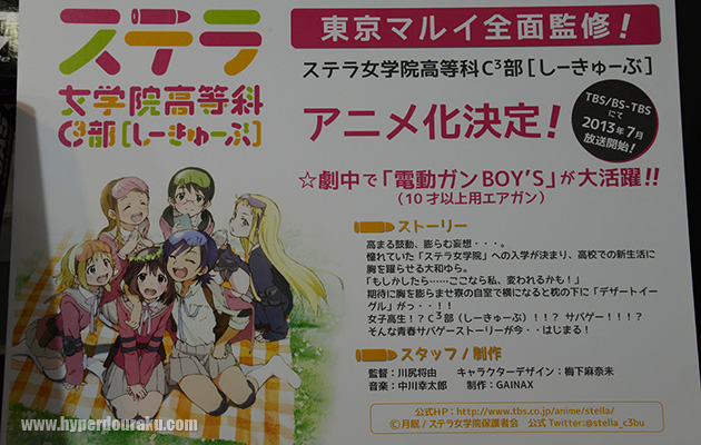 東京マルイが全面監修するステラ女学院高等科C3部[しーきゅーぶ]がアニメ化決定。劇中では電動ガンBOY'Sが大活躍。制作はGAINAX。