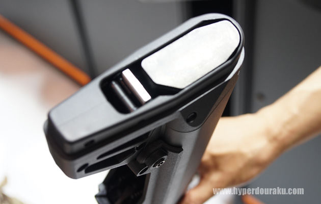 可変ホップアップの調節ダイヤルはL96と同じようなストック底面にある。ダイヤルはクリック感はなく、トルクが重めのシームレスなタイプだった。