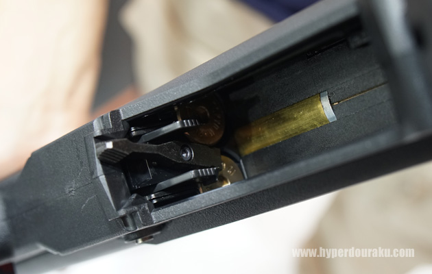 とくにシェルの排出時はブルパップということもあり、勢いよくシェルが飛び出すと手で受け止められずに落としてしまうこともありそう。ローライトコンディションではシェルを紛失しないように注意が必要だ。