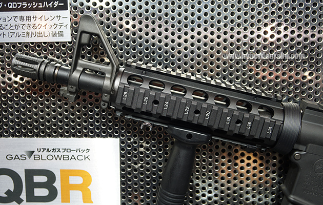 CQBR <Block1>。ガスブローバックライフルM4A1 MWSのショートバージョン。クレーンストック、KACタイプのフォアグリップ、LMTタイプ・リアサイト、CQDタイプのリアスリングフック標準装備。