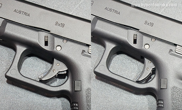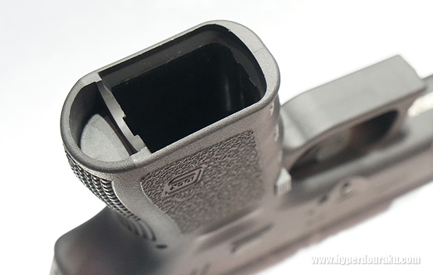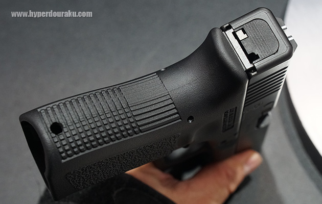 グリップフレーム厚がこれまでのマルイのグロックはわずかだが実銃より幅があったのが、今回の19ではリアルサイズになっているそう。