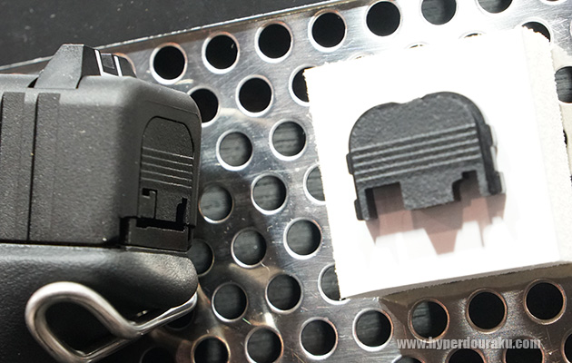 スライドカバープレートも実銃同様に樹脂製の別パーツ。これはサードパーティ製を含めてカスタムの幅が広がりそう。