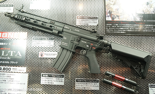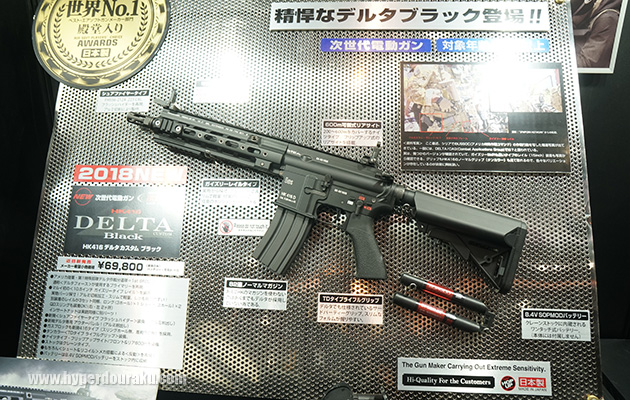 次世代電動ガン。HK416 デルタカスタム ブラック。価格は69,800円、2018年夏くらいをめどに発売予定とのこと。