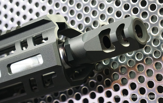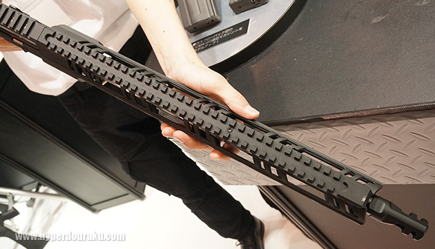 アルミ製のハンドガード。細身で握りやすかった。16インチバレルと民間AR用の長さだが、軽快に取り回しできる。