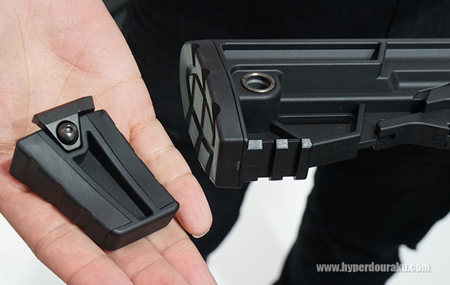 ストック底部のパーツは取り外せる。ストック本体側はピカティニーレール仕様。