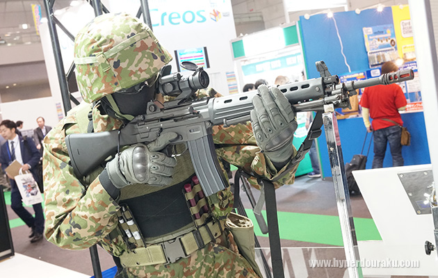 マルイのブース内にはMTR16のPVで使用されたTMTCのバリケと89式小銃を持ったマネキンが展示されていた。
