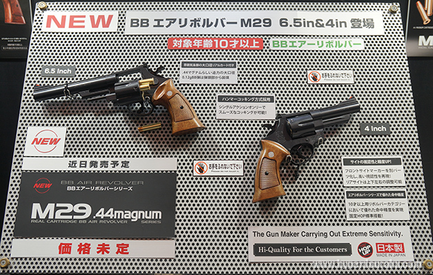 .44マグナムリボルバーの迫力がある。もともとパイソンと同じシリーズだったので、価格は未定ながらパイソンと同価格帯を想定しているようだ。この間にSAAのプロシリーズが出てしまったので、そちらと混同しがちだが、あまくまで低価格帯としてのエアリボルバーラインだ。