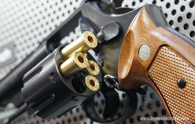カートリッジは.44マグナム弾のサイズを再現しており、パイソンの.357マグナムより大きい。