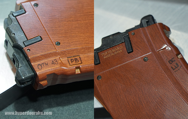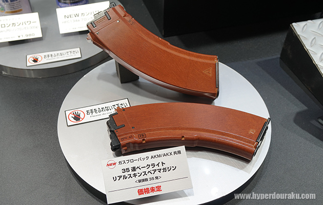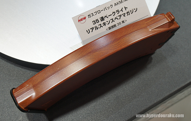 AKM、AKXガスブローバック用のマガジンとして、ベークライトリアルスキンスペアマガジンが発売される。装弾数は35発で変わらず。実物マガジンからスキャンした画像を加工して特殊印刷で再現しているとのこと。