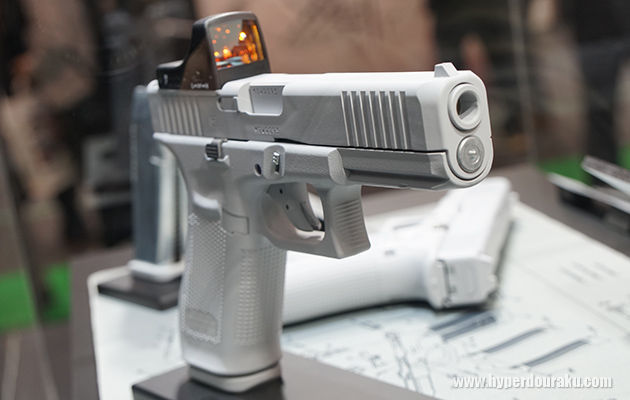 2023年2月のマルフェス9で発表されたグロック17 Gen5 MOSのモックアップが展示。