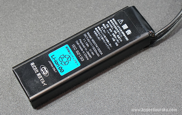 バッテリーは価格が7800円(税込)と高いのだが、内部に安全回路の制御基盤が入っていて、とにかく安全にしようという強い意志が感じられる。