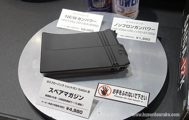 10mレンジでサイガ12の試射ができた。リコイルは激しく、硬質感があり良い感じ。弾は0.2gを使用したが、この距離でもホップが浮き上がり気味に当たる。0.25gだとややドロップ気味に飛ぶそうで、0.23gくらいがベストかもと開発担当者の話。いやマルイから0.23g弾出てないやん! と心の中で突っ込んでた。
