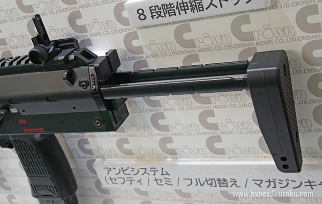 8段階伸縮ストックやCP7のサイレンサーやフォアグリップが取り付け可能となっている。